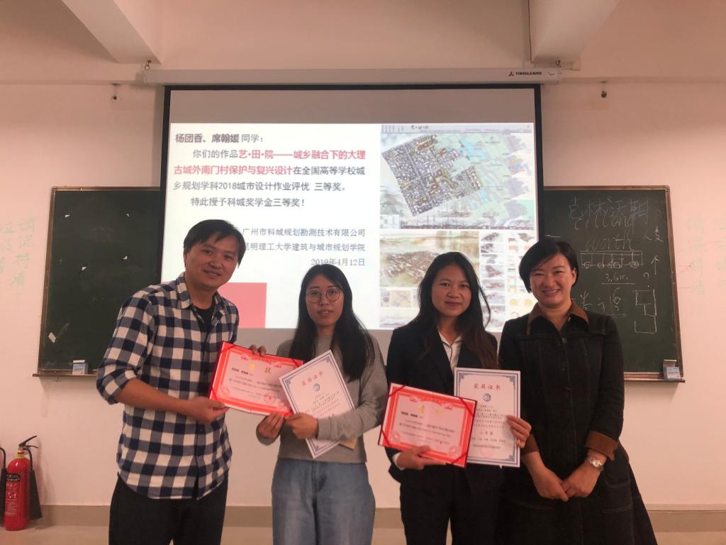 广州市科城规划勘测技术有限公司昆明分公司已经连续四年出资(每年两万),奖励在学科竞赛参与过程中表现突出的城乡规划专业本科及研究生。
