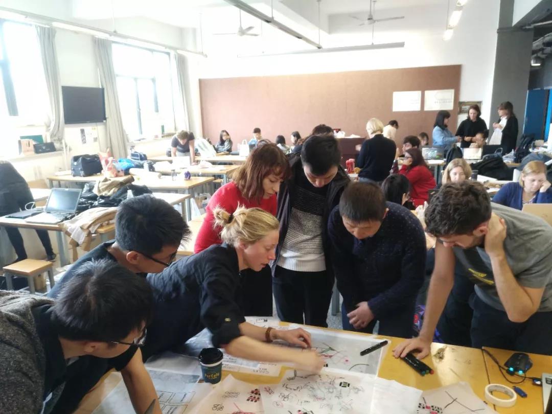 工作坊每个设计小组分别由3个国外学生和4个国内同学组合而成,联合设计期间,大家跨越文化背景差异,克服语言沟通的障碍,积极探讨合作设计,通过思维碰撞,最终呈现出丰富多彩的创意方案。