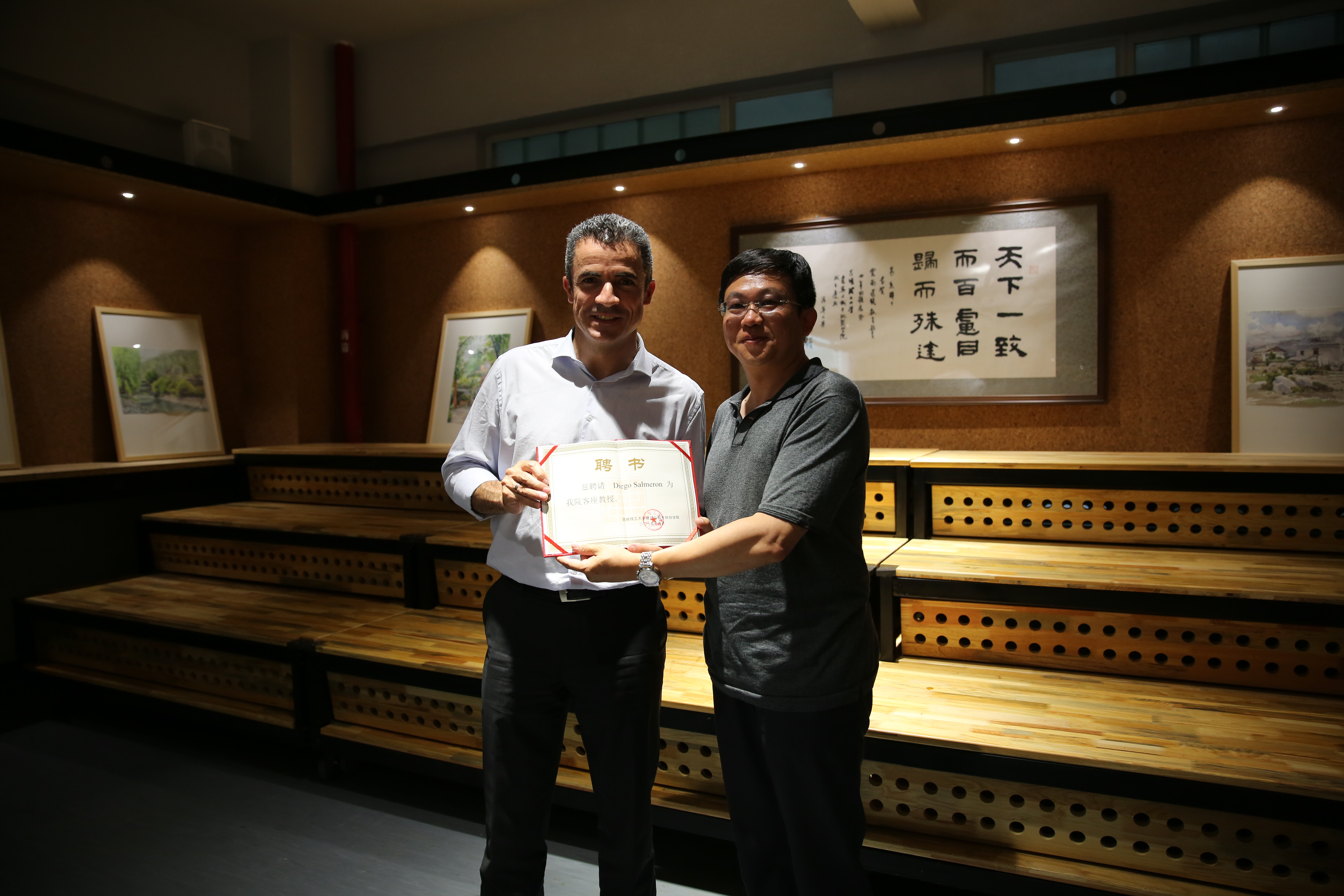 双方就今后在云南的工业建筑的保护利用方面的合作进行了较为深入的交流。本次交流会上,由建筑学院为迭戈先生颁发了客座教授荣誉证书。