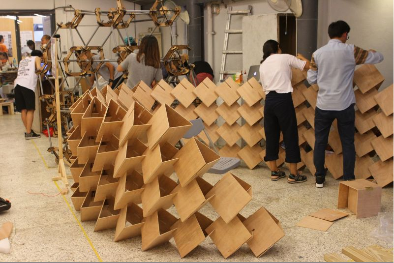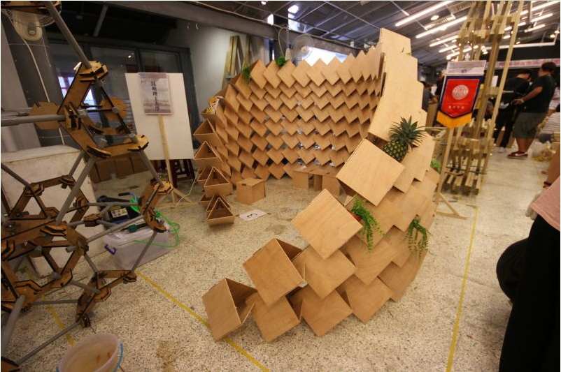 而在材料表现上,因应竞赛以50%木材为限的条件,同学们无不所用其极的发展出系统化卡榫等细部接点来回应,此也呈现出构筑本质的细部接合课题。从空间氛围、构造型式、构筑系统及细部接合等课题,来作为检视实体建构创作的价值为首要关键。