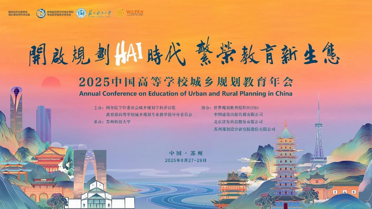 2025年6月27—29日,2025中国高等学校城乡规划教育年会在苏州科技大学举办。中国高等学校城乡规划教育年会是全国城乡规划教育领域最具影响力的盛会之一。本次年会主题为“开启规划HAI时代,繁荣教育新生态”,深入探讨在人工智能与数字技术深度赋能的背景下城乡规划教育的新使命、新方法和新路径,构建人类智慧与人工智能协同(Human-AI Interaction)的教育新生态,培养适应未来城乡发展需求的创新型规划人才。