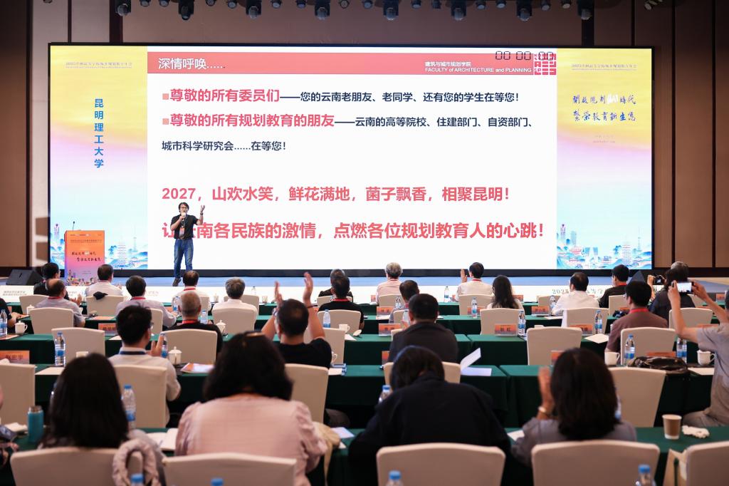 在6月29日上午的闭幕式上,中国工程院院士吴志强教授代表国务院学位委员会城乡规划学科评议组和教育部高等学校城乡规划专业教学指导分委员会宣布2027中国高等学校城乡规划教育年会申办学校竞选结果,昆明理工大学在竞争的8所高校中脱颖而出,获得会议承办权。