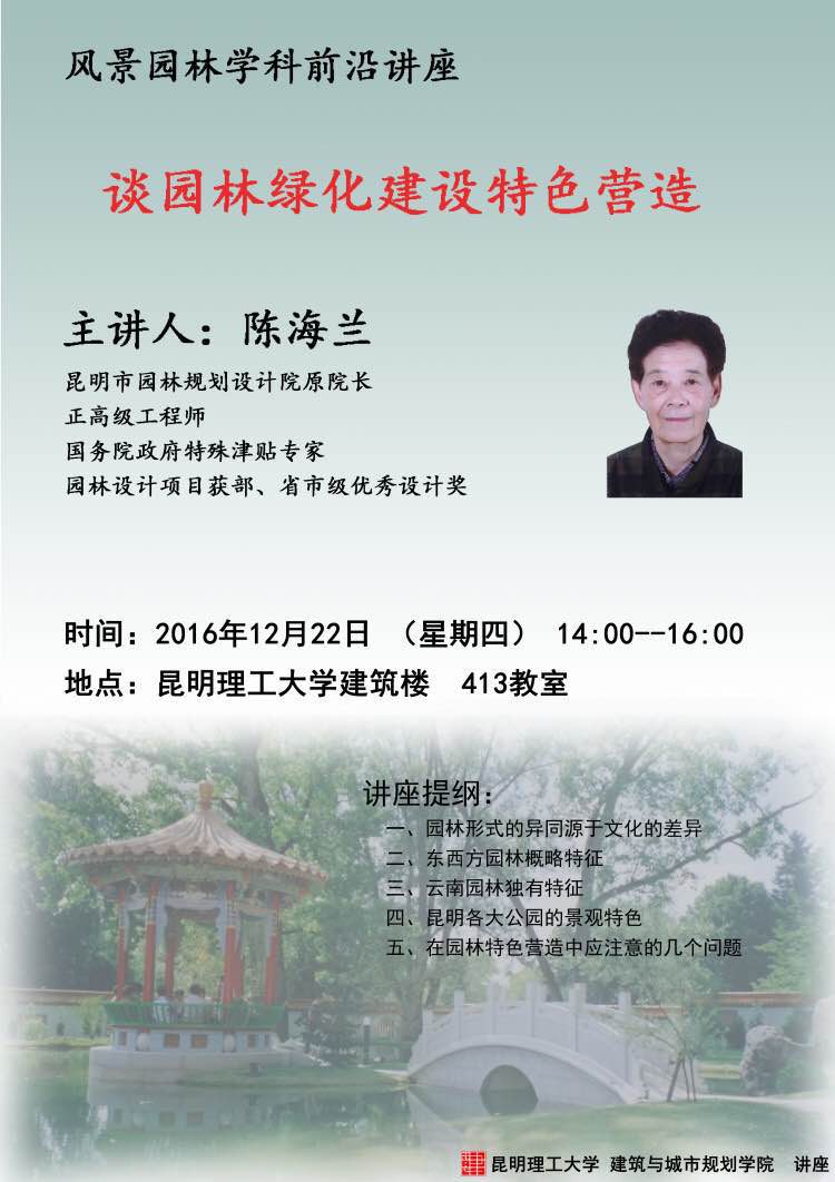 讲座:谈园林绿化建设特色营造(陈海兰高级工程师,国务院政府特殊津贴专家)