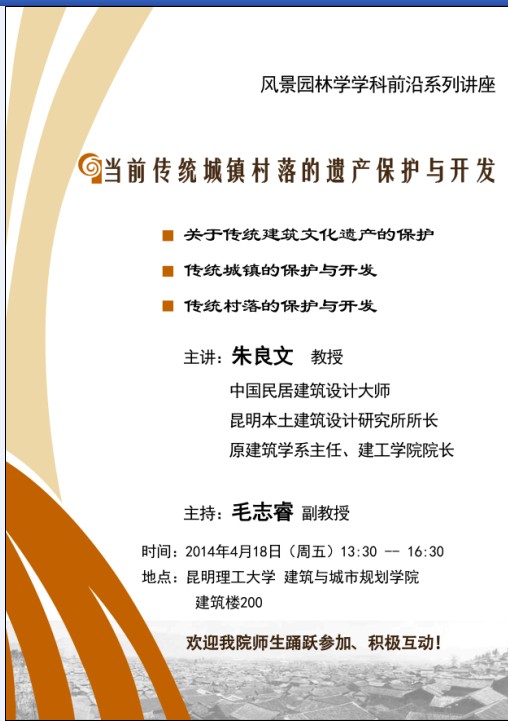 讲座:当前传统城镇村落的遗产保护与开发(朱良文教授)