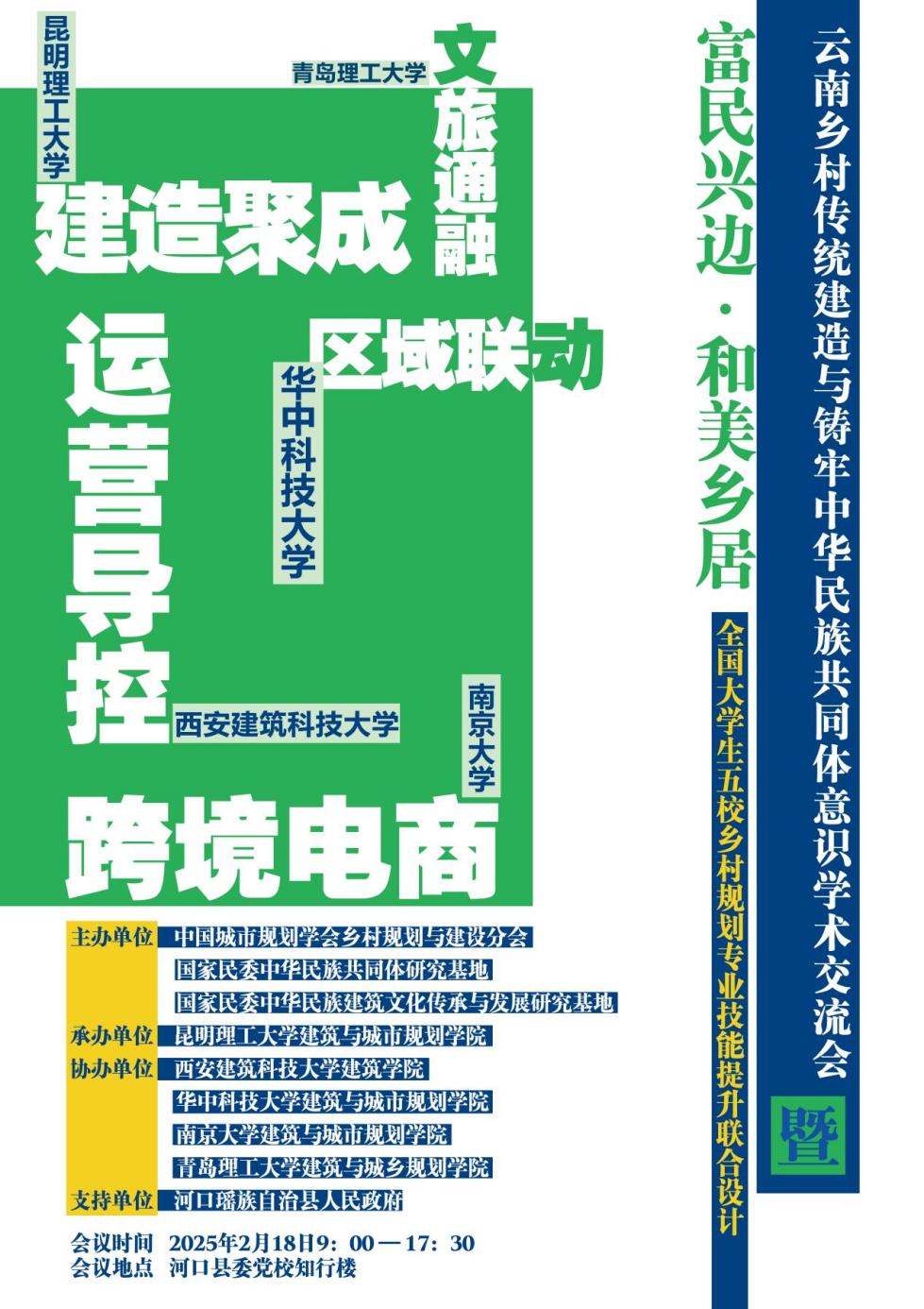2025年2月18日,云南乡村传统建造与铸牢中华民族共同体意识学术交流会暨“富民兴边•和美乡居”全国大学生五校乡村规划专业技能提升联合设计开题活动于云南河口顺利举办。